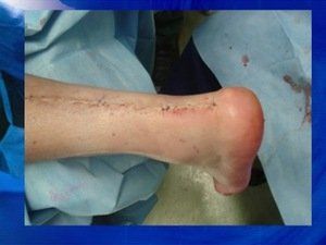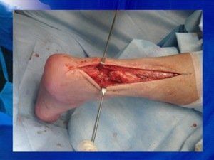 In some circumstances surgery is carried out on the Achilles tendon area. This may be to remove any inflammatory and degenerative changes which have occurred as a result of pathology. In the case of rupture, surgery may be carried out to re-attach the ruptured ends. This procedure is performed via an incision on the back of the ankle near the affected area. The two ends of the Achilles tendon are sewn together using internal dissolving stitches and the skin is then sewn together using external stitches that will be removed after a healing period.