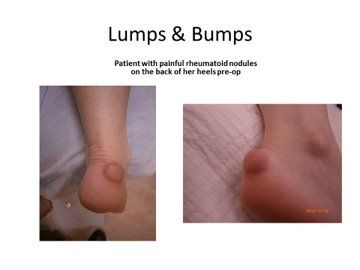 Some conditions, such as Rheumatoid Arthritis can produce painful soft tissue lesions such as those pictured below.
